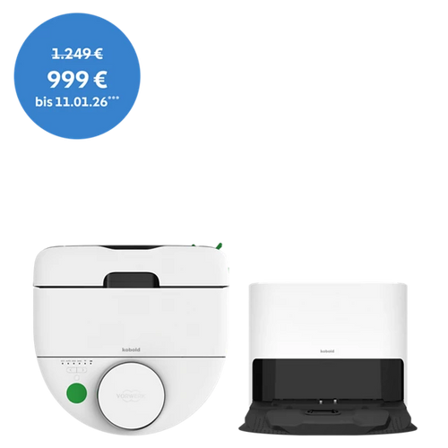 Kobold VR7 Saugroboter & RB7 Servicestation: Preisersparnis 250 € gegenüber des niedrigsten Gesamtpreises der letzten 30 Tage vor dem Aktionszeitraum (1.249 €). Nur im Aktionszeitraum vom 24.11.2025 – 11.01.2026.